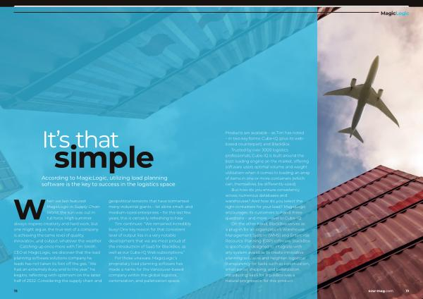 When we last featured MagicLogic in Supply Chain World , the sun was out in full force . High summer always inspires creativity and hard work , but one might argue , the true test of a company is achieving the same level of quality , innovation , and output , whatever the weather . Catching up once more with Tim Smith , CEO at MagicLogic , we discover that the load planning software solutions company he leads has not taken its foot off the gas . “ We had an extremely busy end to the year ,” he begins , reflecting with optimism on the latter half of 2022 . Considering the supply chain and geopolitical tensions that have tormented many industrial giants – let alone small- and medium-sized enterprises – for the last few years , this is certainly refreshing to hear .