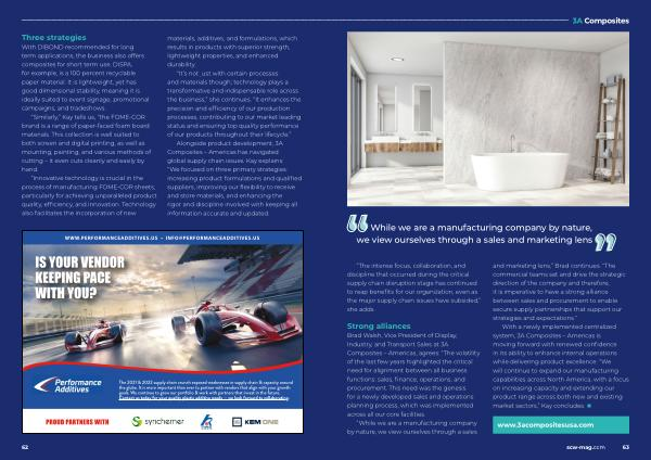Brad Walsh , Vice President of Display , Industry , and Transport Sales at 3A Composites – Americas , agrees : “ The volatility of the last few years highlighted the critical need for alignment between all business functions : sales , finance , operations , and procurement . This need was the genesis for a newly developed sales and operations planning process , which was implemented across all our core facilities .