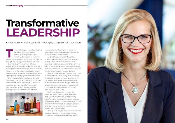 Berlin ' s Chief Procurement Officer , Katherine Storer , joins us to discuss how she is leading the company through a revolutionary initiative to systematize proactive inventory management . To use Katherine ’ s words , she ' s ‘ upping the planning game ’ of the business . Berlin supplies plastic , glass , and metal containers , closures , and dispensing systems across all industries . “ We ' re not a traditional manufacturer ; we ' re platform agnostic , which enables us to provide a broader offering across more than 1000 different manufacturers , allowing us to focus on identifying the right packaging solution for our customers ,” Storer opens .