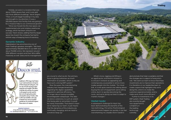 Further to investments in its ERP system , Peak Trading also recently bought new equipment to complement the leading technology currently scw-mag . com 71
