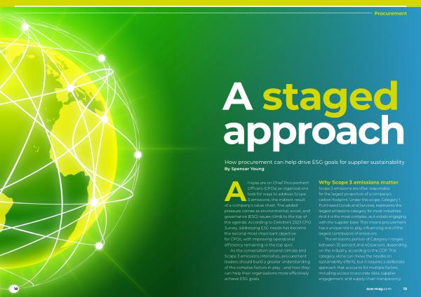 All eyes are on Chief Procurement Officers ( CPOs ) as organizations look for ways to address Scope 3 emissions , the indirect result of a company ’ s value chain . The added pressure comes as environmental , social , and governance ( ESG ) issues climb to the top of the agenda . According to Deloitte ’ s 2023 CPO Survey , addressing ESG needs has become the second-most important objective for CPOs , with improving operational efficiency remaining in the top spot .