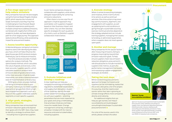 Many companies have set net-zero targets using the Science Based Targets initiative ( SBTi ), which requires the inclusion of Scope 3 emissions , but they may find it challenging to move forward . Based on Deloitte ’ s experience working with multiple companies to address emissions , combined with insights from CPOs and academic studies , we have developed a path for a five-stage journey . This approach seeks to drive efficiency while accelerating impact for procurement leaders .