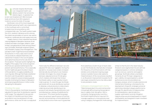 “ Supply chains in most industries have faced varying degrees of disruption because of raw material and labor shortages , inflation , cyber threats , and geopolitical unrest among others ,” says Carl Waller , Northside Hospital ’ s System Vice President , Supply Chain Management . “ The pandemic both magnified and exacerbated those factors . In many cases , stock outs of critical products , delayed shipments , and substantial increases in the cost of supplies and capital have become the rule and not the exception . These pain points highlight the fragility of the supply chain and a recognition that there are operational blind spots that prevent optimal performance . This is especially true for healthcare given the direct impact of the pandemic on supply availability and cost of goods . Although Northside weathered the storm well , the pandemic experience was the catalyst for several initiatives geared towards minimizing the impact of disruption and improving performance . In other words , disrupting the disruption .
