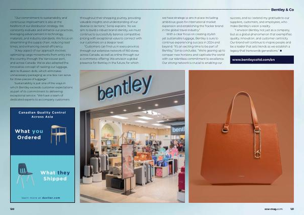 With a clear focus on creating stylish yet sustainable luggage , Bentley is sure to continue experiencing success in 2024 and beyond . “ It ’ s an exciting time to be part of Bentley ,” Sonia concludes . “ We ’ re gearing up to conquer new horizons and captivate the world with our relentless commitment to excellence . Our strong network is crucial to enabling our success , and so I extend my gratitude to our suppliers , customers , and employees , who make Bentley ’ s vision a reality .