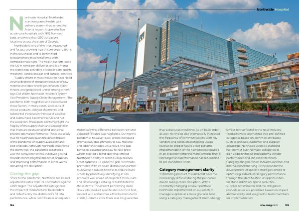 “ Supply chains in most industries have faced varying degrees of disruption because of raw material and labor shortages , inflation , cyber threats , and geopolitical unrest among others ,” says Carl Waller , Northside Hospital ’ s System Vice President , Supply Chain Management . “ The pandemic both magnified and exacerbated those factors . In many cases , stock outs of critical products , delayed shipments , and substantial increases in the cost of supplies and capital have become the rule and not the exception . These pain points highlight the fragility of the supply chain and a recognition that there are operational blind spots that prevent optimal performance . This is especially true for healthcare given the direct impact of the pandemic on supply availability and cost of goods . Although Northside weathered the storm well , the pandemic experience was the catalyst for several initiatives geared towards minimizing the impact of disruption and improving performance . In other words , disrupting the disruption .