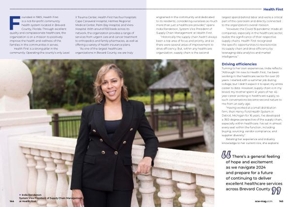 First engrained in the community and dedicated to its residents , considering ourselves as much more than just a healthcare provider ,” opens India Randerson , System Vice President of Supply Chain Management at Health First .
