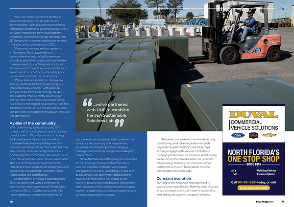 “ However , our commitment to attracting , developing , and retaining talent extends beyond this partnership ,” Lisa adds . “ We actively engage with various institutions through job fairs and internships . Additionally , we ’ re committed to education . To promote clean energy learning , for instance , we ’ ve partnered with UNF to establish the JEA Sustainable Solutions Lab .”