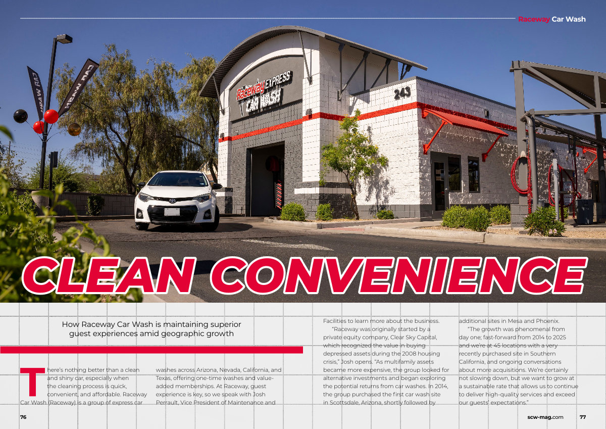 There’ s nothing better than a clean and shiny car, especially when the cleaning process is quick, convenient, and affordable. Raceway Car Wash( Raceway) is a group of express car washes across Arizona, Nevada, California, and Texas, offering one-time washes and valueadded memberships. At Raceway, guest experience is key, so we speak with Josh Perrault, Vice President of Maintenance and