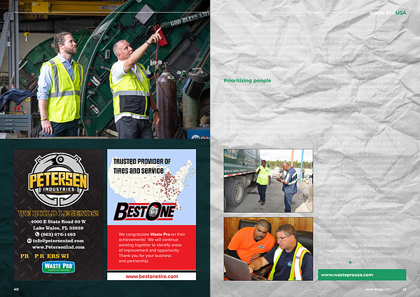 As our conversation closes, Keith turns to what’ s next for Waste Pro.“ Our focus in terms of expansion is to create density in the areas in which we operate. Florida, for instance, is a saturated market, and we service around 18- to-20 percent of the state’ s total volume. We’ re booming in Louisiana, and we’ ve recently expanded into Lake Charles, Louisiana, which puts us at the furthest-west point of the state and borders Beaumont, Texas. Although we’ re operating trucks in Beaumont, we’ d like to establish our own Texas facility by the end of 2025 to consolidate our presence and continue growing in the region.”