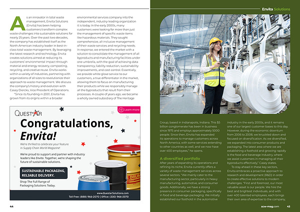 After years of expanding its operations and refining its niche, Envita currently offers a variety of waste management services across several sectors.“ We mainly cater to the manufacturing sector, particularly in heavy manufacturing, automotive, and consumer goods. Additionally, we have a strong presence in consumer packaging, specifically in food and beverage packaging. We initially established our foothold in the automotive industry in the early 2000s, and it remains one of our largest customer bases to this day. However, during the economic downturn from 2006 to 2008, we knuckled down and focused on diversification. As we diversified, we expanded into consumer products and packaging. The latest area where we are establishing a foothold and growing rapidly is the food and beverage industry, where we assist customers in managing all their byproducts effectively,” Casey states.