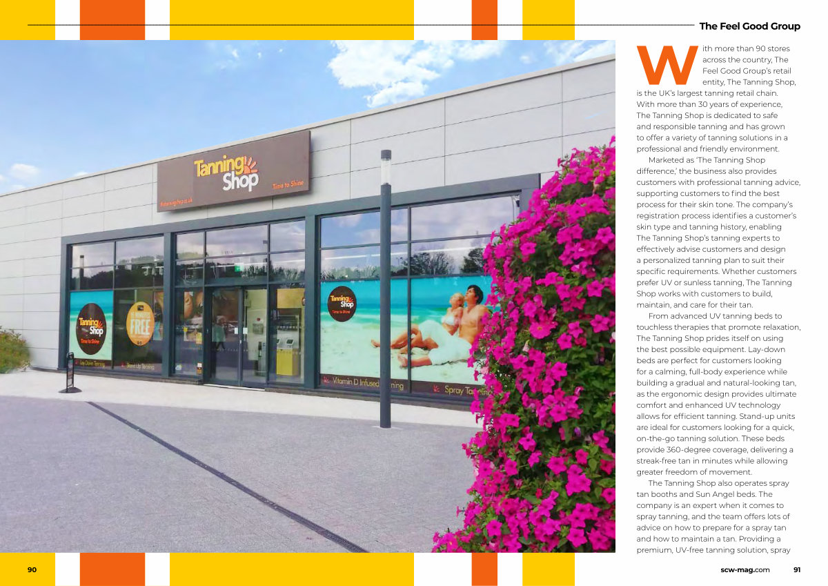 With more than 90 stores across the country, The Feel Good Group’ s retail entity, The Tanning Shop, is the UK’ s largest tanning retail chain. With more than 30 years of experience, The Tanning Shop is dedicated to safe and responsible tanning and has grown to offer a variety of tanning solutions in a professional and friendly environment. Marketed as‘ The Tanning Shop difference,’ the business also provides customers with professional tanning advice, supporting customers to find the best process for their skin tone. The company’ s registration process identifies a customer’ s skin type and tanning history, enabling The Tanning Shop’ s tanning experts to effectively advise customers and design a personalized tanning plan to suit their specific requirements. Whether customers prefer UV or sunless tanning, The Tanning Shop works with customers to build, maintain, and care for their tan.