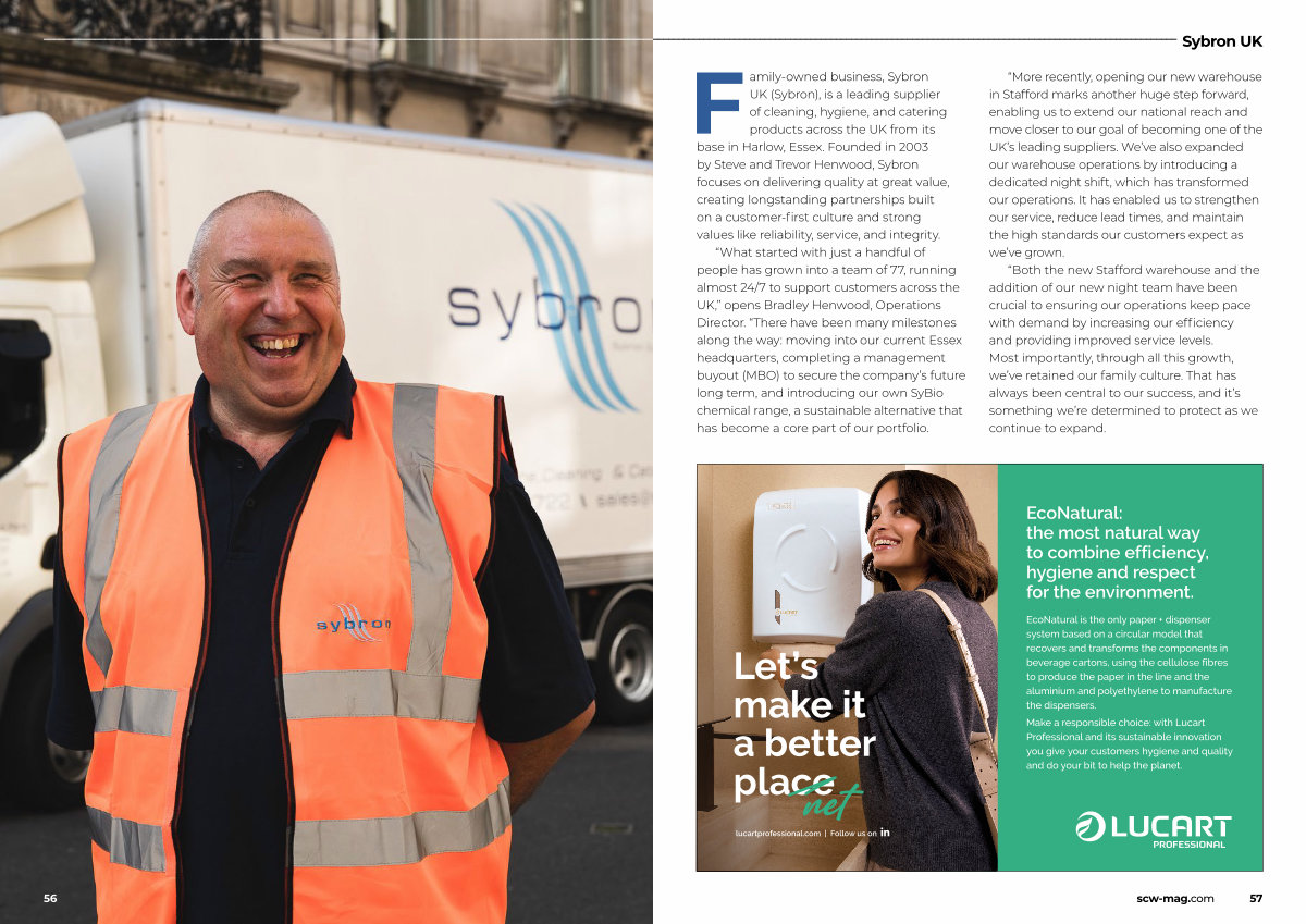 Family-owned business, Sybron UK( Sybron), is a leading supplier of cleaning, hygiene, and catering products across the UK from its base in Harlow, Essex. Founded in 2003 by Steve and Trevor Henwood, Sybron focuses on delivering quality at great value, creating longstanding partnerships built on a customer-first culture and strong values like reliability, service, and integrity.