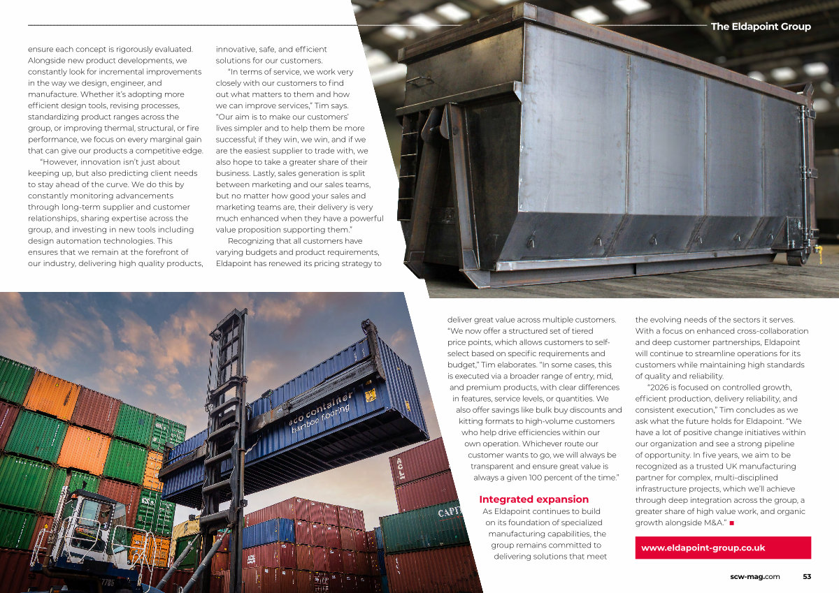 “ 2026 is focused on controlled growth, efficient production, delivery reliability, and consistent execution,” Tim concludes as we ask what the future holds for Eldapoint.“ We have a lot of positive change initiatives within our organization and see a strong pipeline of opportunity. In five years, we aim to be recognized as a trusted UK manufacturing partner for complex, multi-disciplined infrastructure projects, which we’ ll achieve through deep integration across the group, a greater share of high value work, and organic growth alongside M & A.” ■