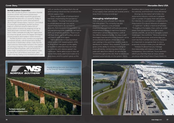 Norfolk Southern is the number-one originator of finished vehicles , with 61 automotive facilities served and 35 destination ramps . It also has the most extensive intermodal network in the eastern US , serving a majority of the country ’ s population and manufacturing base , with connections to every major container port on the Atlantic coast , as well as the Gulf of Mexico and Great Lakes . Learn more by visiting www . NorfolkSouthern . com with an exodus of workers from the rail and trucking industries that constitute the vehicle supply chain .
