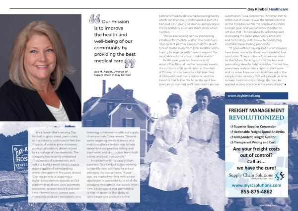 As the year goes on , there ’ s a buzz around Day Kimball , as the company awaits the outcome of its application to the state of Connecticut to become a full member of a broader healthcare network , and the benefits that follow . “ As far as the next few years are concerned , we ’ ll continue to pursue automation ,” Lisa comments . “ Another shift to come out of Covid-19 was the realization that all the hospitals within the community share a single goal , and we can work together to achieve that – for instance , by adopting and leveraging the same proprietary products and technology , with a view to developing centralized purchasing processes .
